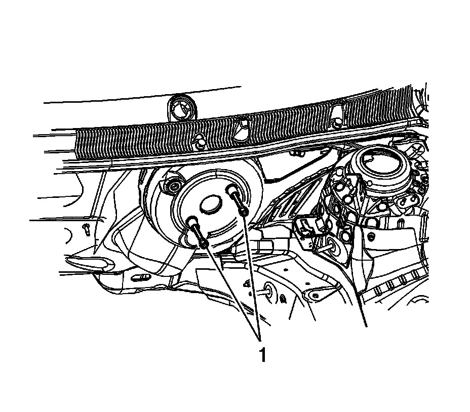 2. Install the power vacuum brake booster bolts (1) and tighten to 19 Nm (14 lb ft).