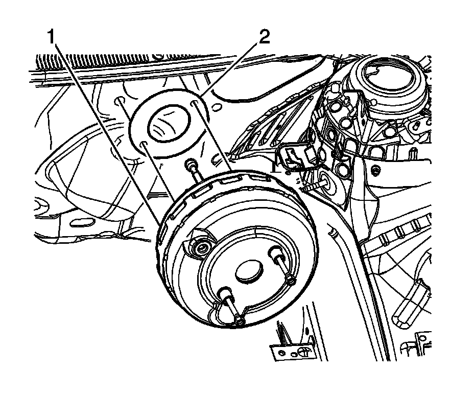 1. Install the power vacuum brake booster (1) and gasket (2).