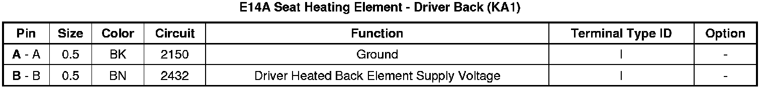 Seat Heating Element - Driver Back (KA1)
