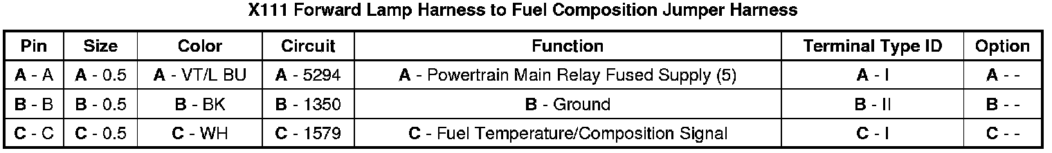 X111 Forward Lamp Harness to Fuel Composition Jumper Harness