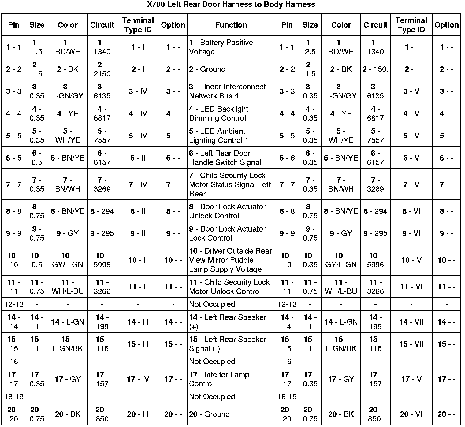 X700 Left Rear Door Harness to Body Harness