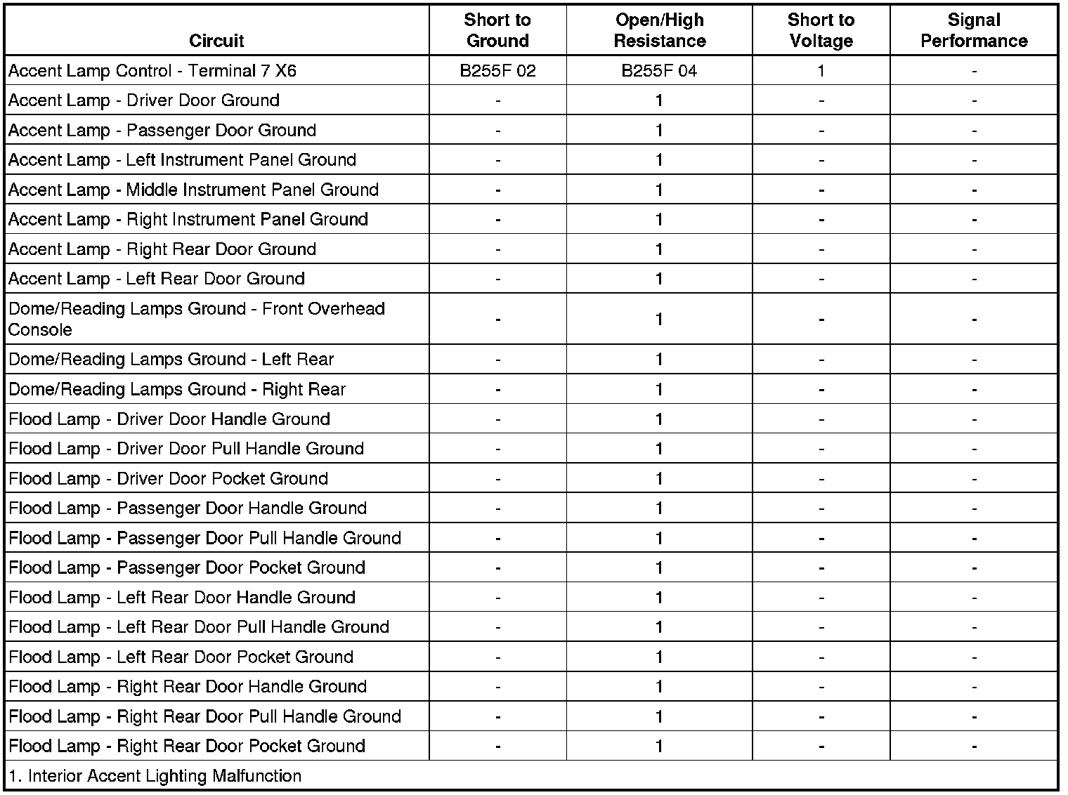 Interior Accent Lighting Malfunction
