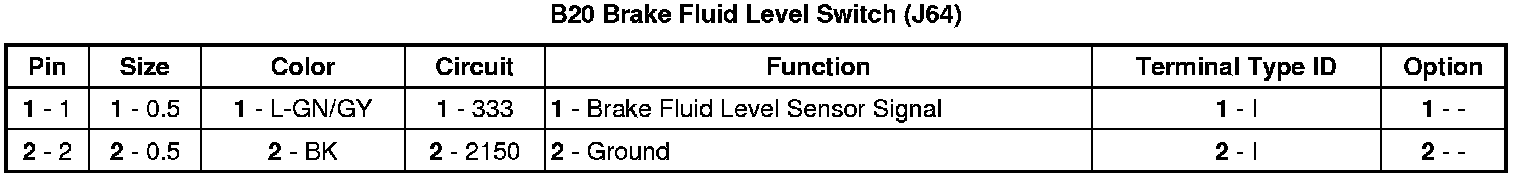 B20 Brake Fluid Level Switch (J64)