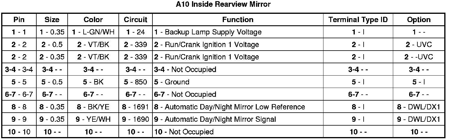 A10 Inside Rearview Mirror