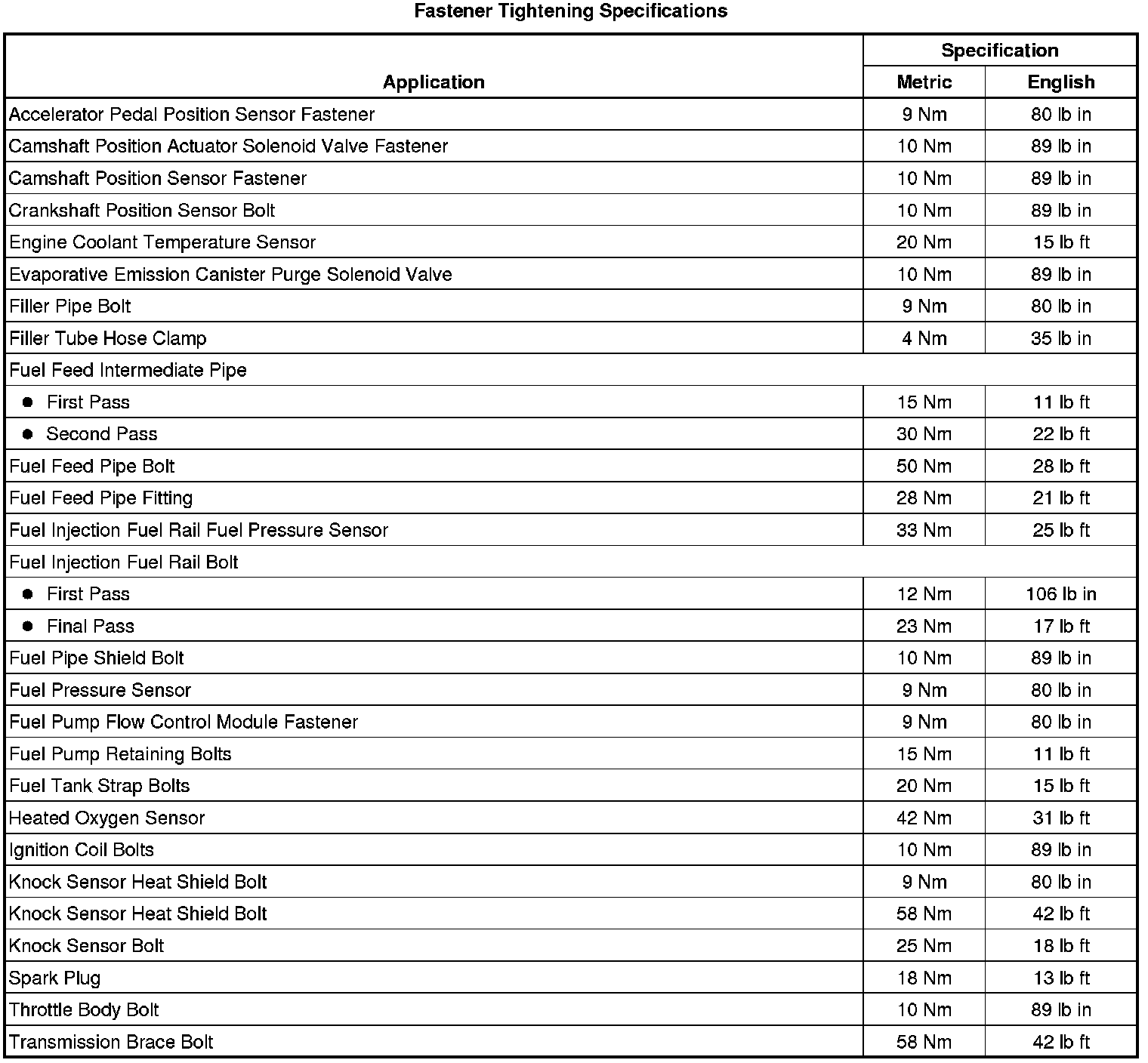 Fastener Tightening Specifications