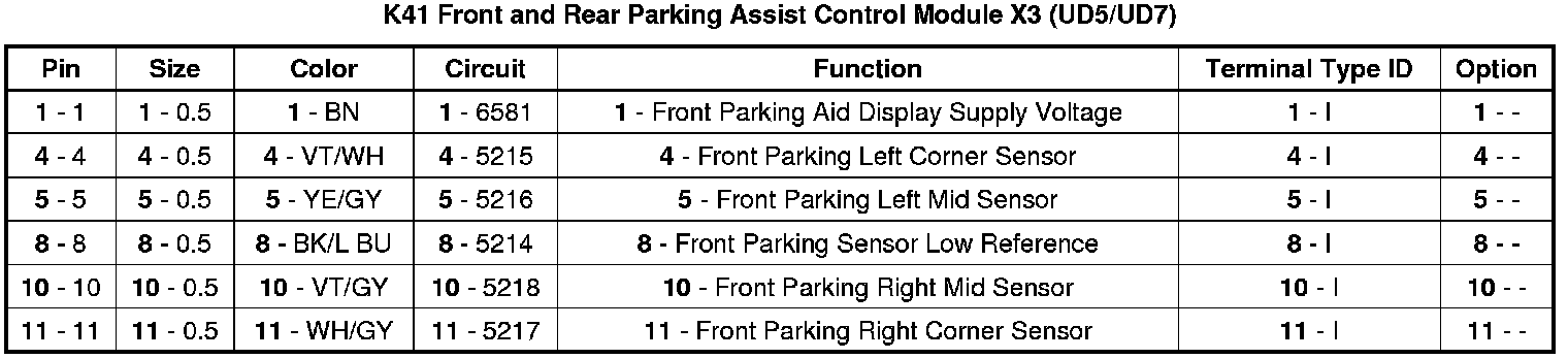 Front and Rear Parking Assist Control Module X3 (UD5/UD7)