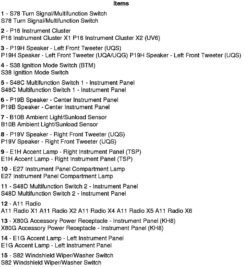 Instrument Panel/Center Console Component Views