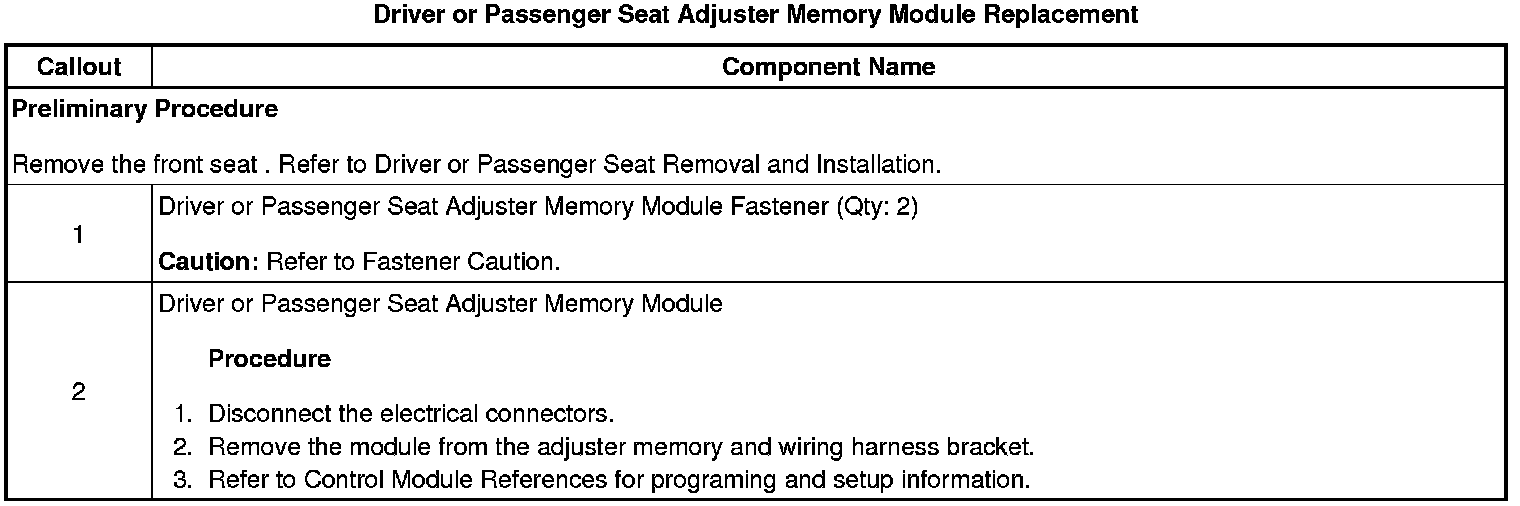 Driver or Passenger Seat Adjuster Memory Module Replacement