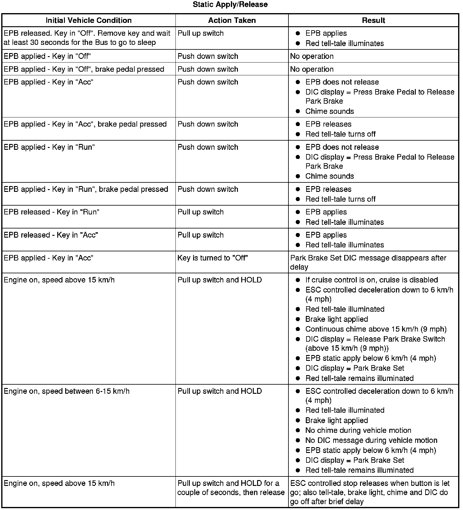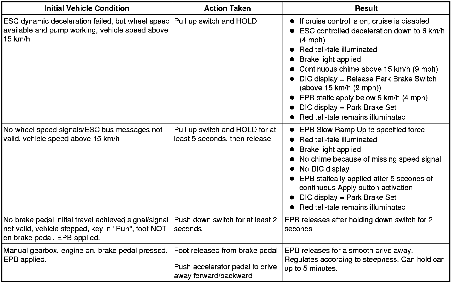 Instead of a park brake lever there is an electric switch in the mid-console. By pulling the switch upwards the park brake is activated and the park brake warning lamp in the IPC is illuminated. By pushing it downwards the park brake is released and the warning lamp goes out.