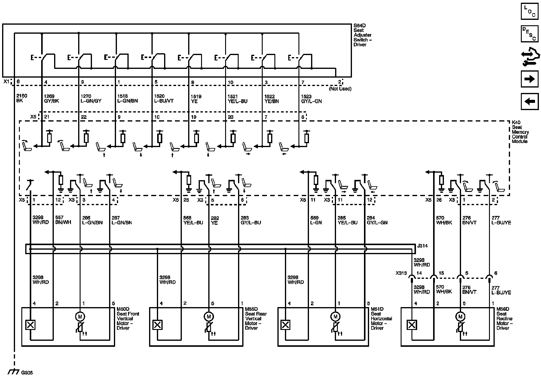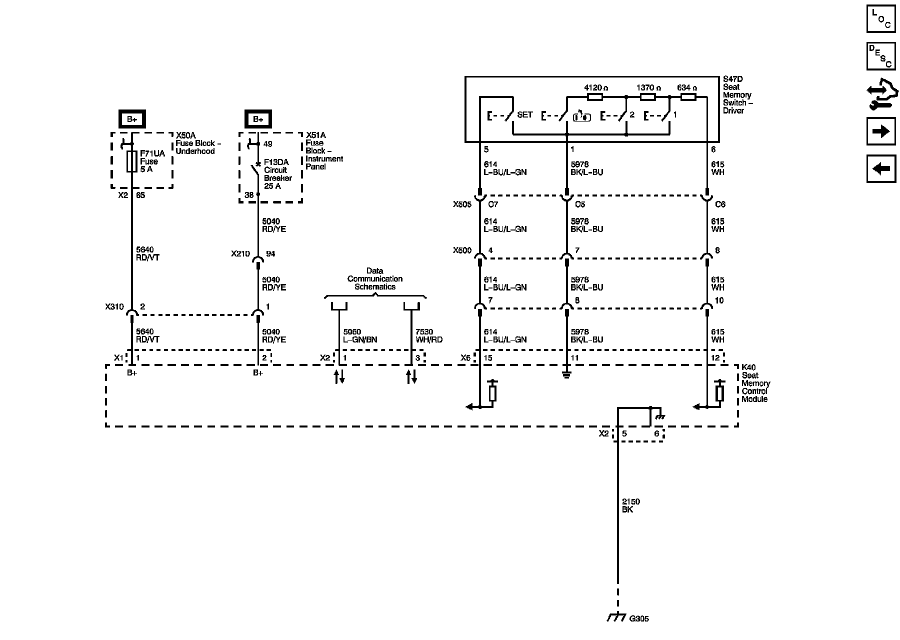 Power, Ground, Serial Data and Seat Memory Switch (A45)