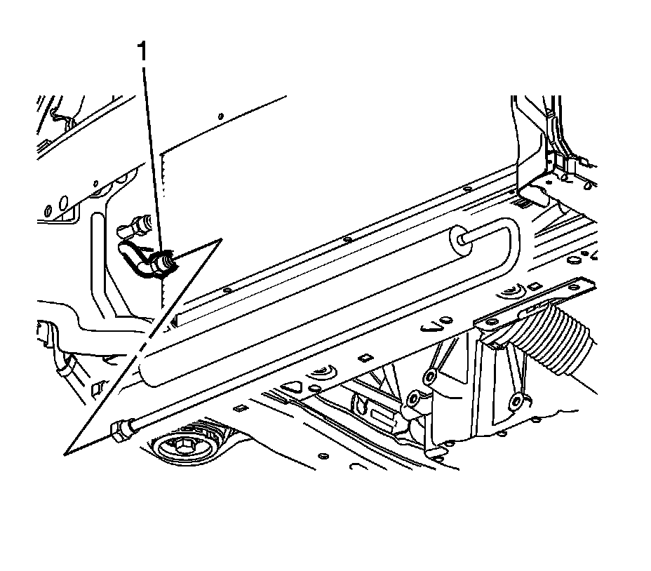 15. Disconnect the power steering gear outlet hose (1) from the power steering fluid cooler.