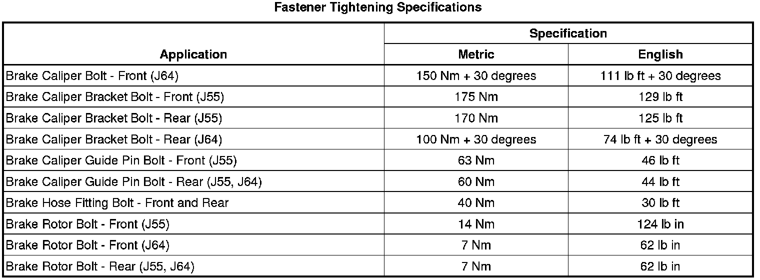 Fastener Tightening Specifications