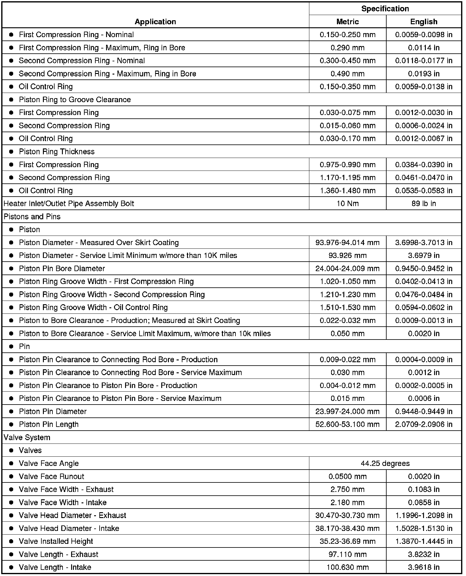 Engine Mechanical Specifications (LFX)