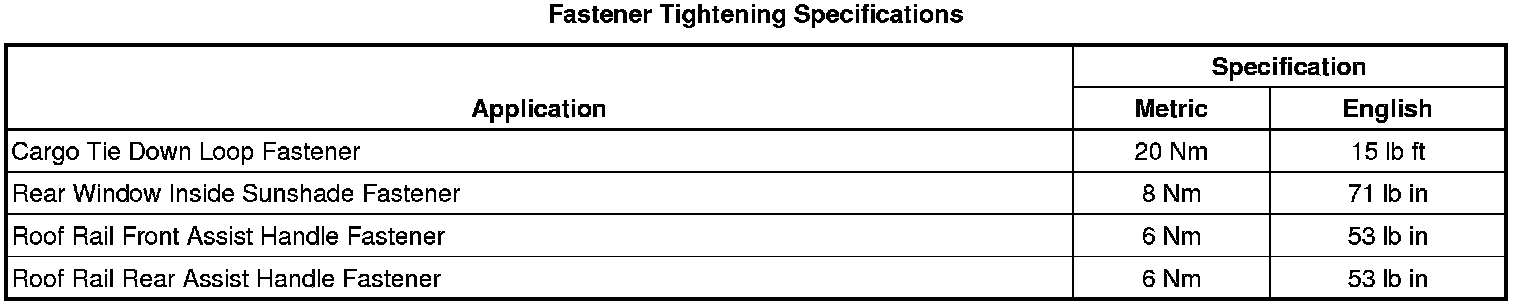 Fastener Tightening Specifications