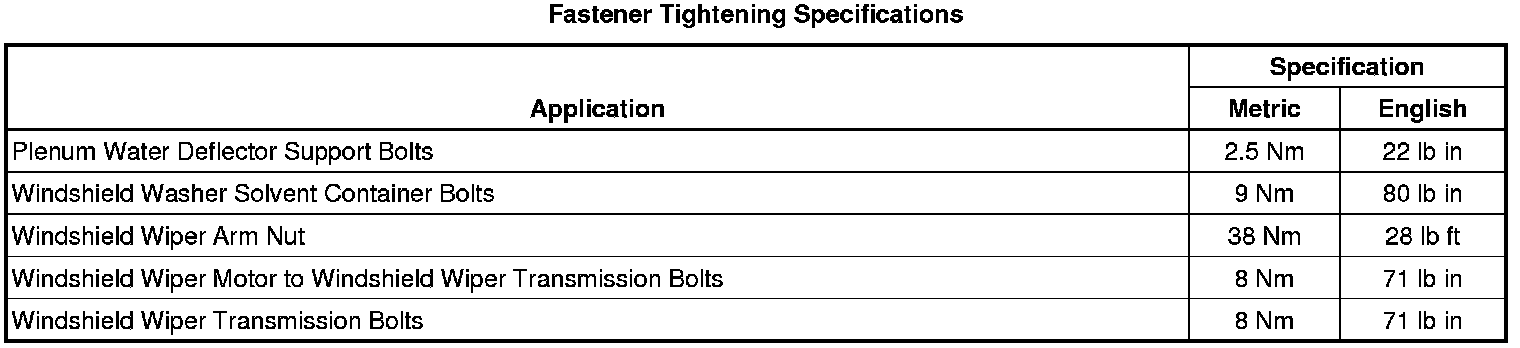 Wiper and Washer Systems: Specifications