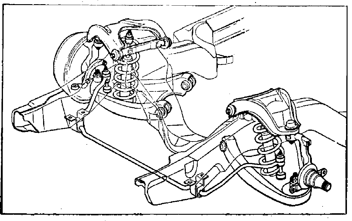 All models except Camaro and 1984---88 Corvette use a Short-Long Arm (SLA) type front suspension with independent coil springs riding on lower control arms, Fig. 1. Ball joints link upper and lower control arms to a spindle assembly, and tubular shock absorbers are used to dampen spring action. On some models, a spring steel stabilizer shaft is connected between the chassis and lower control arms to control side roll.