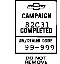 Each vehicle modified in accordance with the instructions outlined in this Product Campaign Bulletin will require a "Campaign Identification Label". Each label provides a space to include the five digit dealer code of the dealer performing the campaign service. This information may be inserted with a typewriter or ballpoint pen.