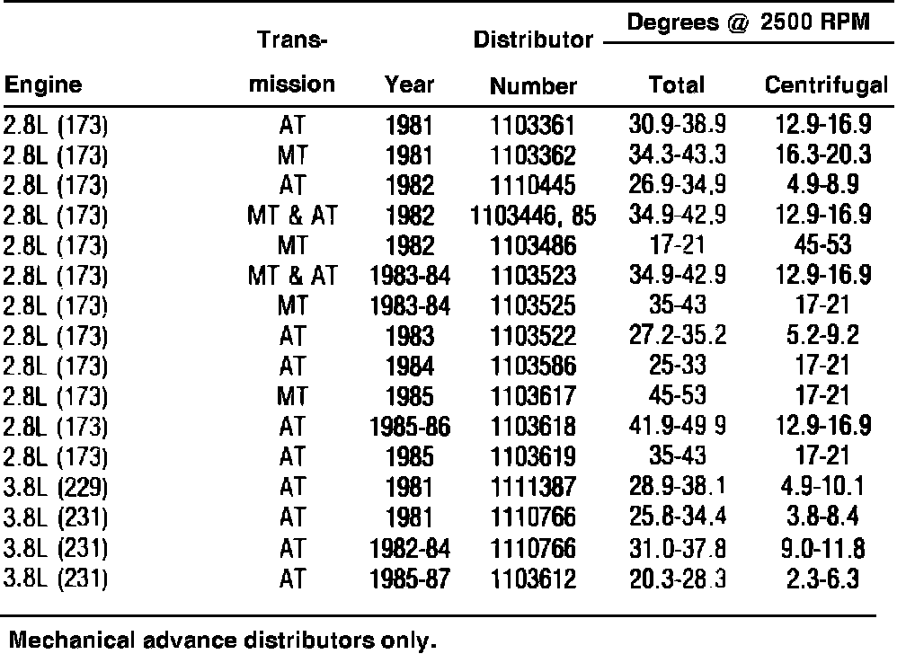 Distributor Timing Advance Specifications: