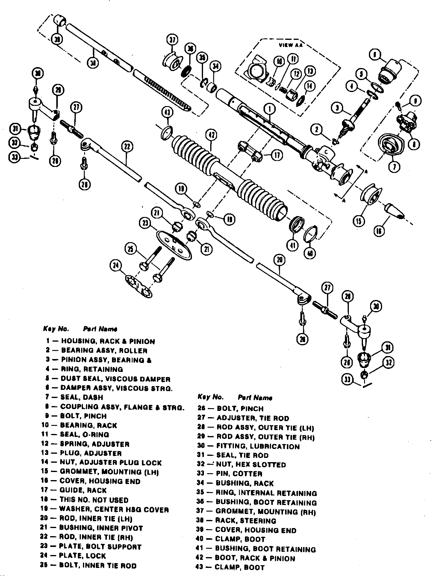 Fig. 5 Exploded view of Saginaw rack & pinion steering gear. Cavalier, Firenza, Skyhawk & 2000: