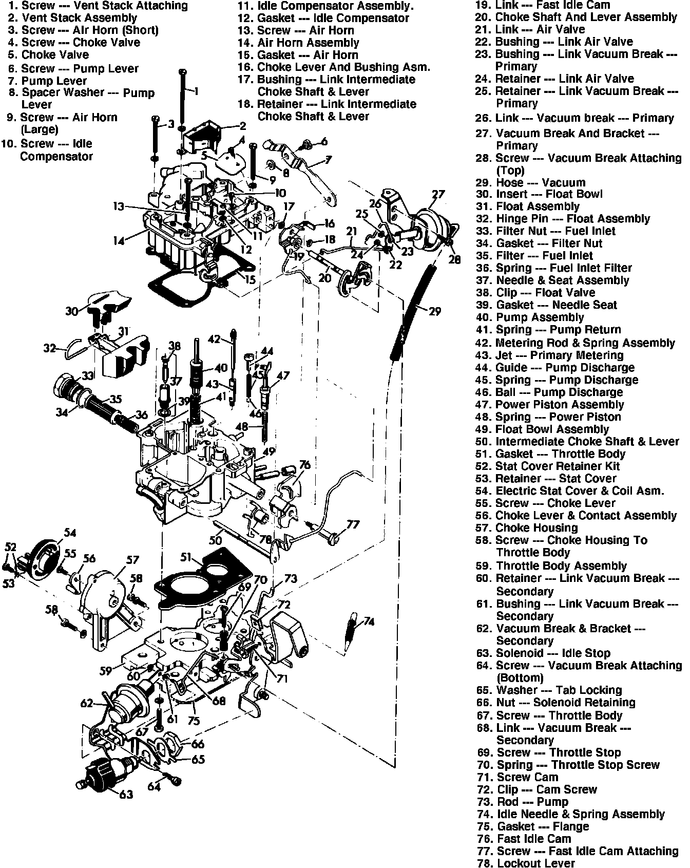 Fig. 2 Exploded view of Rochester Varajet 2SE carburetor: