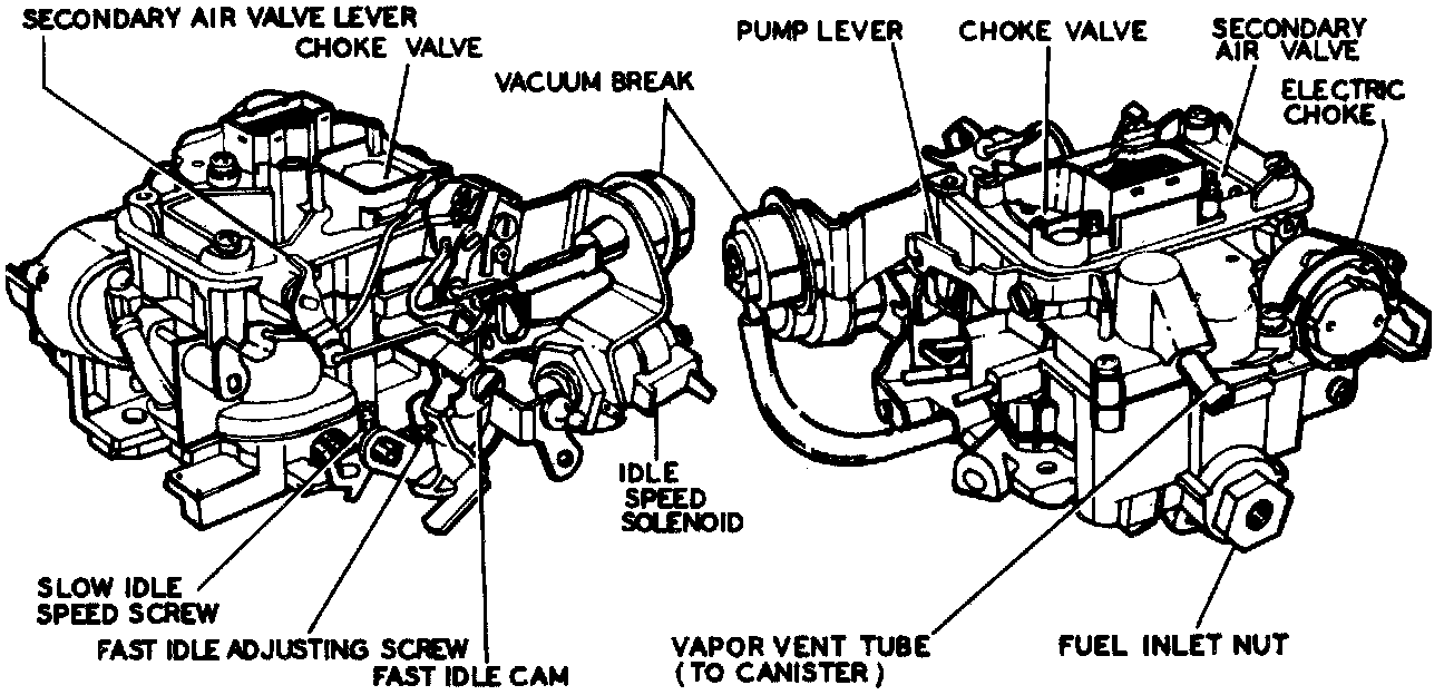 The float chamber is internally vented through a vertical vent cavity in the air horn. The float chamber is also externally vented through a tube in the air horn. A hose connects this tube directly to a vacuum operated vapor vent valve located in the vapor canister. When the engine is not running, the canister vapor vent valve is open, allowing fuel vapor from the float chamber to pass into the canister where the vapor is stored until normally purged.