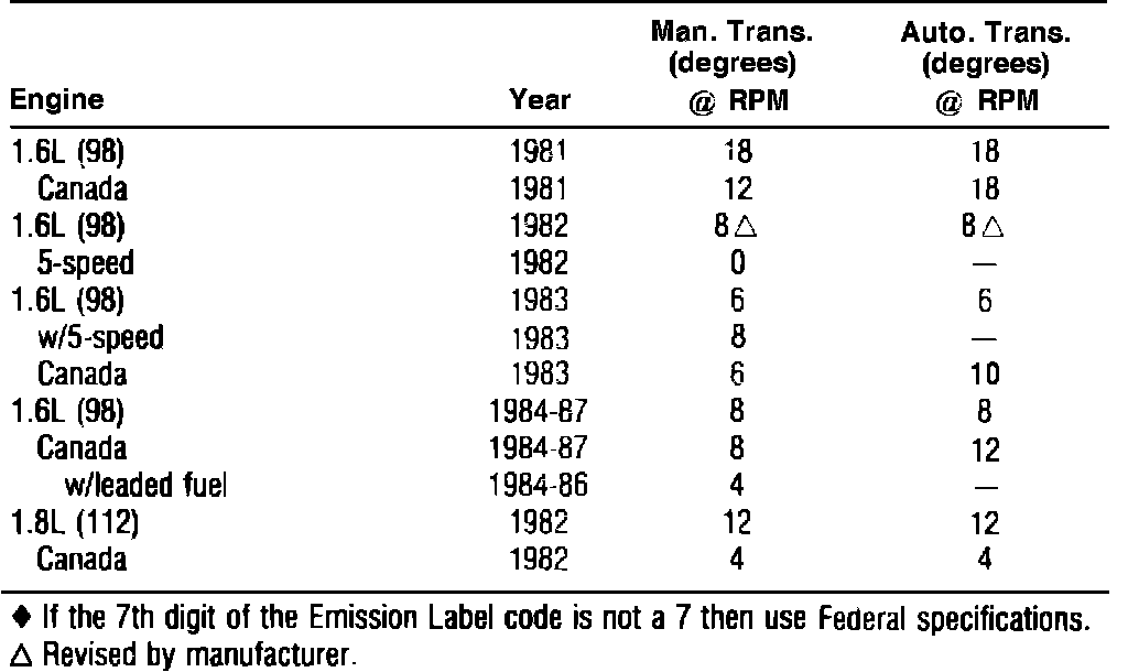 Ignition Timing: Specifications