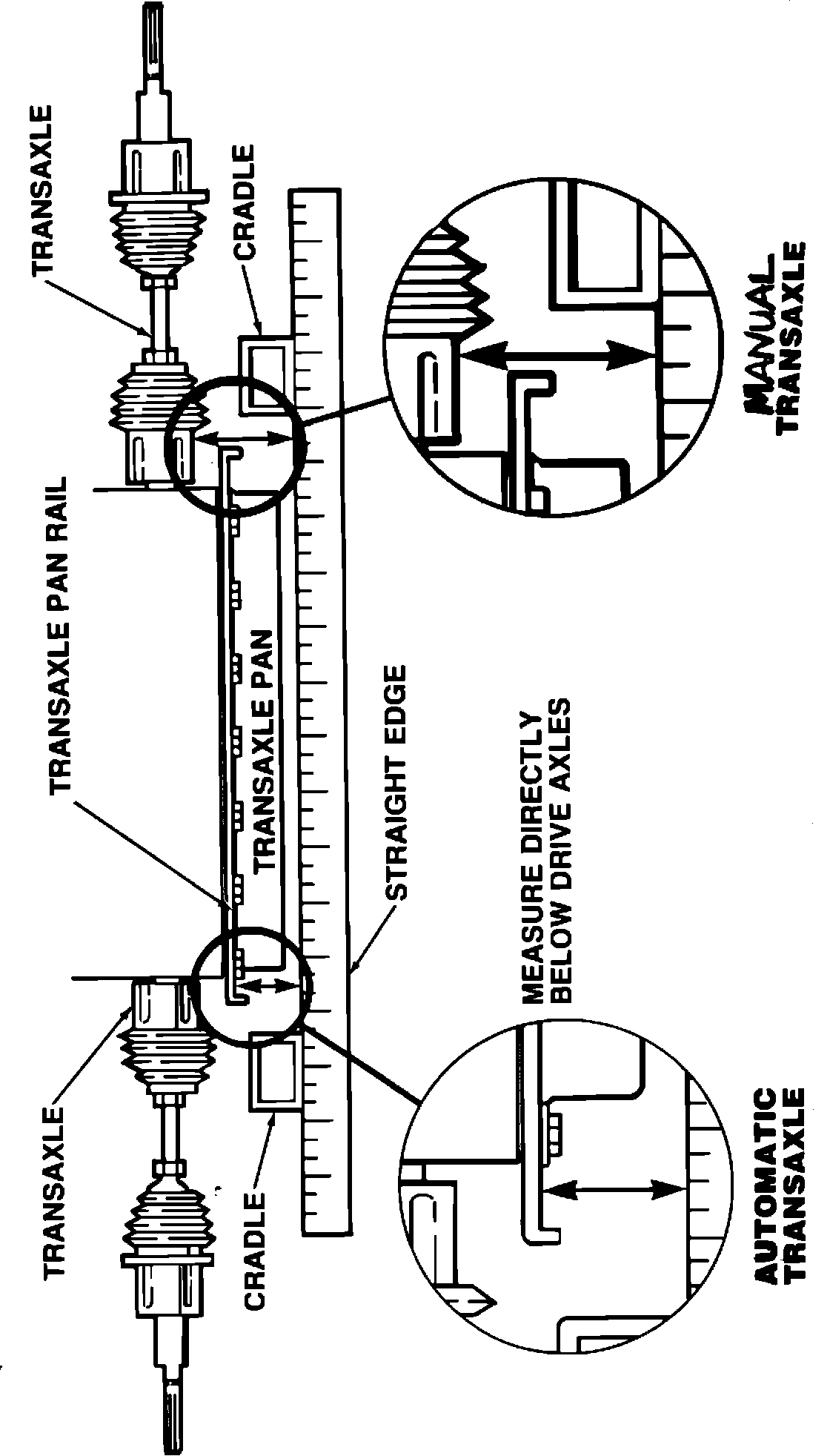 Automatic Transmission - Differences in drive axle angles will be indicated by measuring a difference in the transmission left and right pan rail height. (See Illustration).
