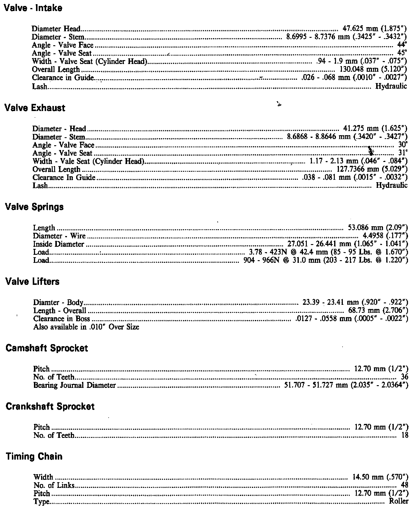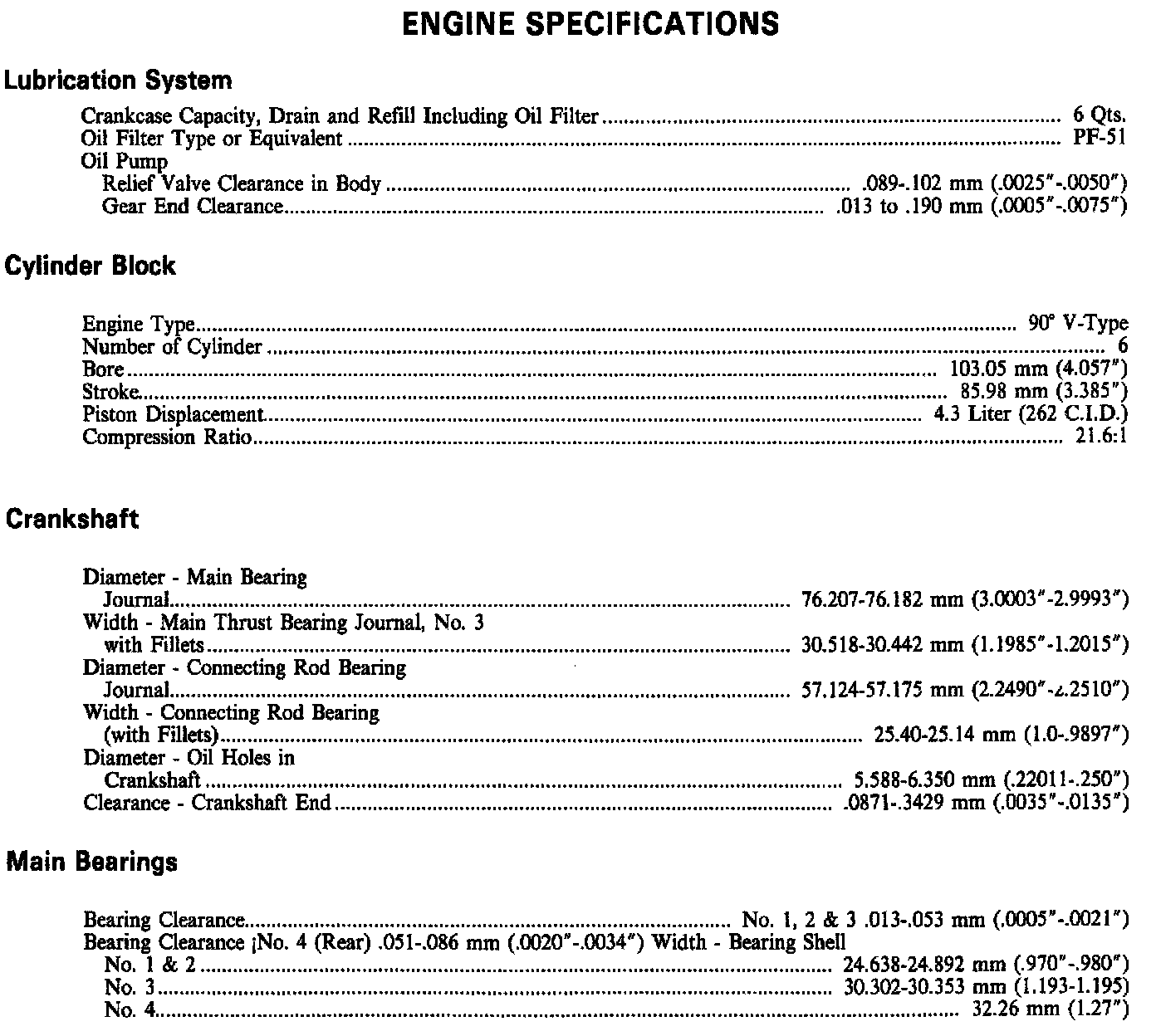 Engine Specifications:
