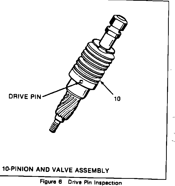 Inspect pinion and valve assembly for broken drive pin. If broken drive pin is found, replace the gear assembly.
