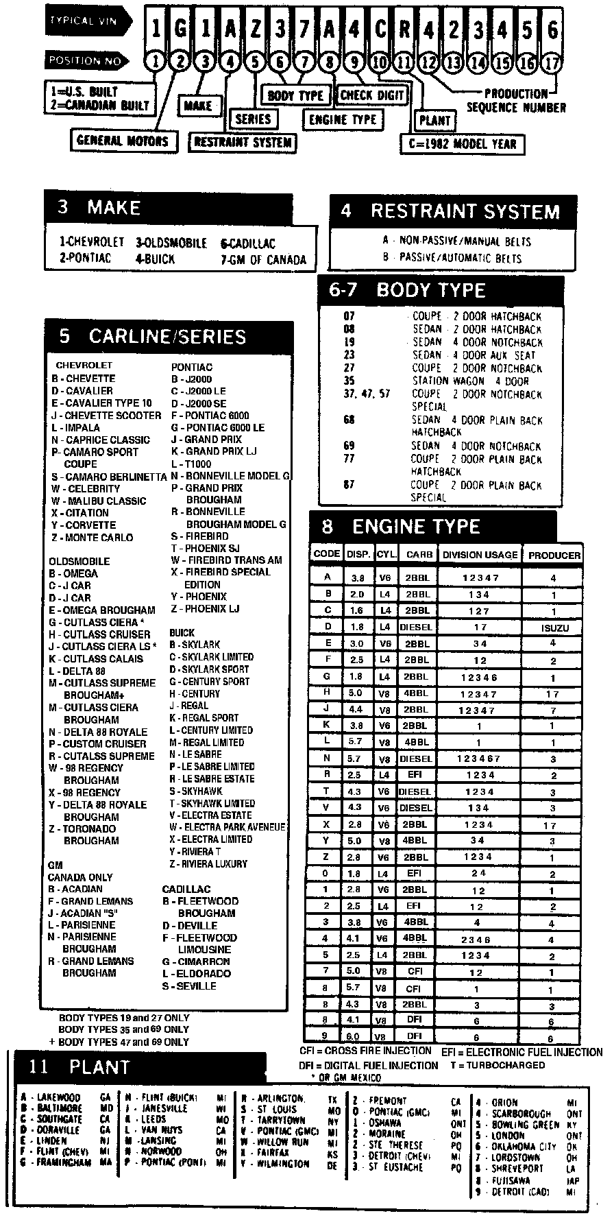 GM Automobile VIN Charts