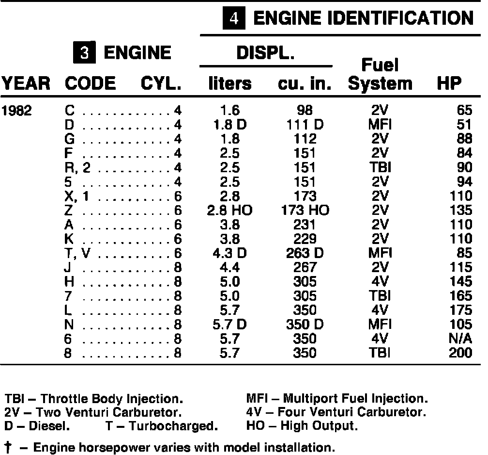 Engine Identification - 1982: