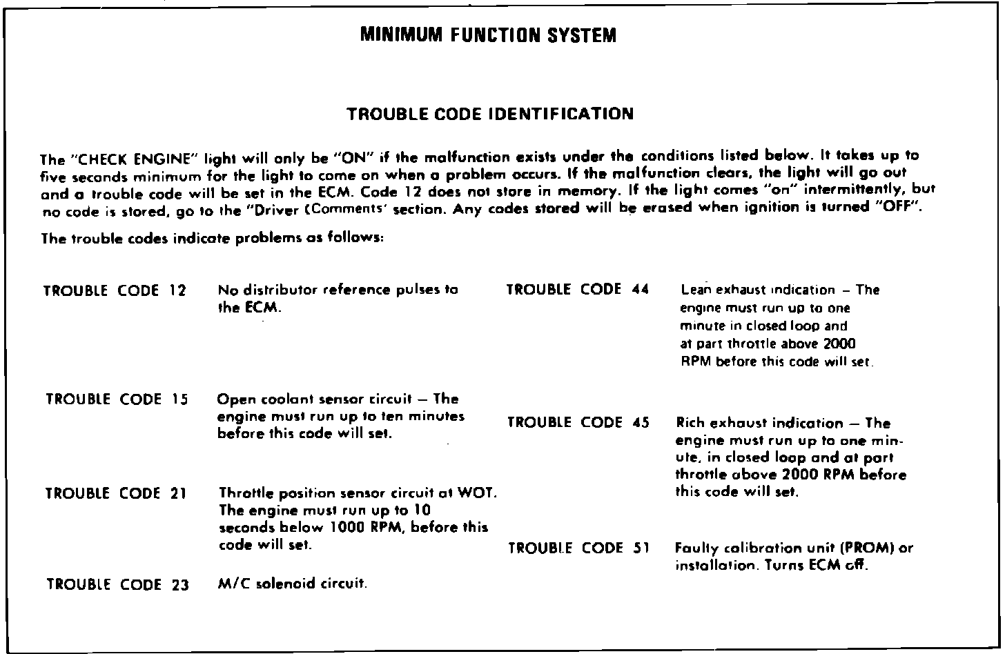 Fig. 3 Trouble Code Identification. Minimum Function System: