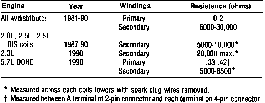 Ignition Coil Specifications: