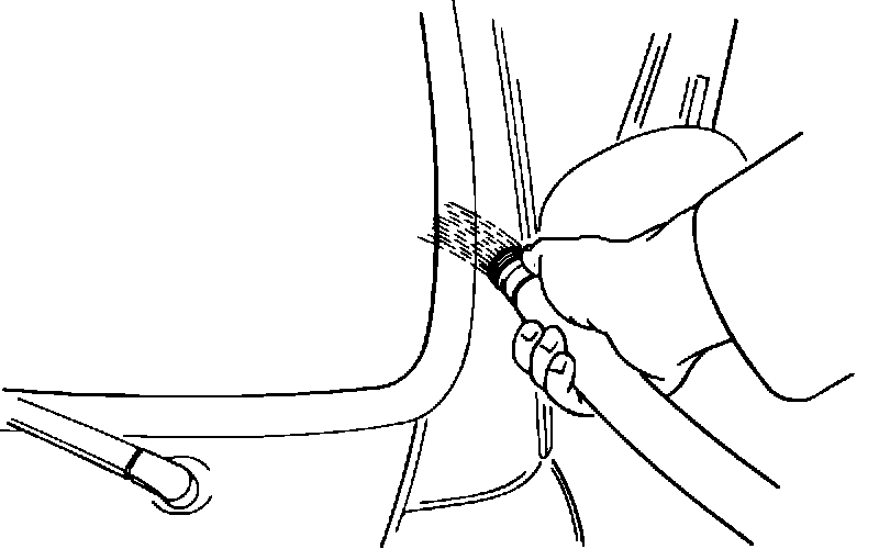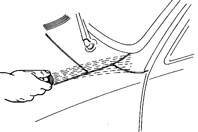 If water still enters the vehicle, the leak is probably due to poor seal adhesion at the windshield pillar to cowl joint flange.