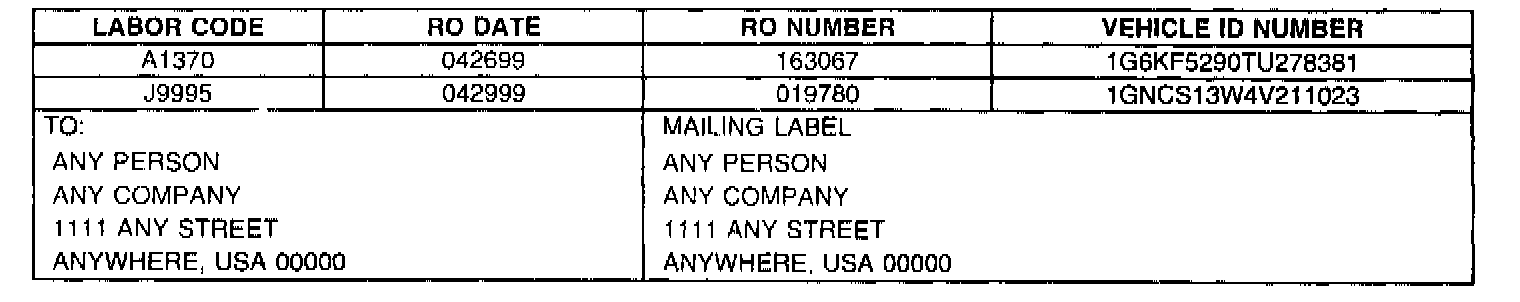 BELOW ARE R.O. ONLY REQUESTS WHICH SHOULD BE RETURNED TO THE REQUESTOR VIA THE POST OFFICE USING THE MAILING LABEL PROVIDED. NO R.O. ONLY REQUESTS SHOULD BE RETURNED TO THE WARRANTY PARTS CENTER.