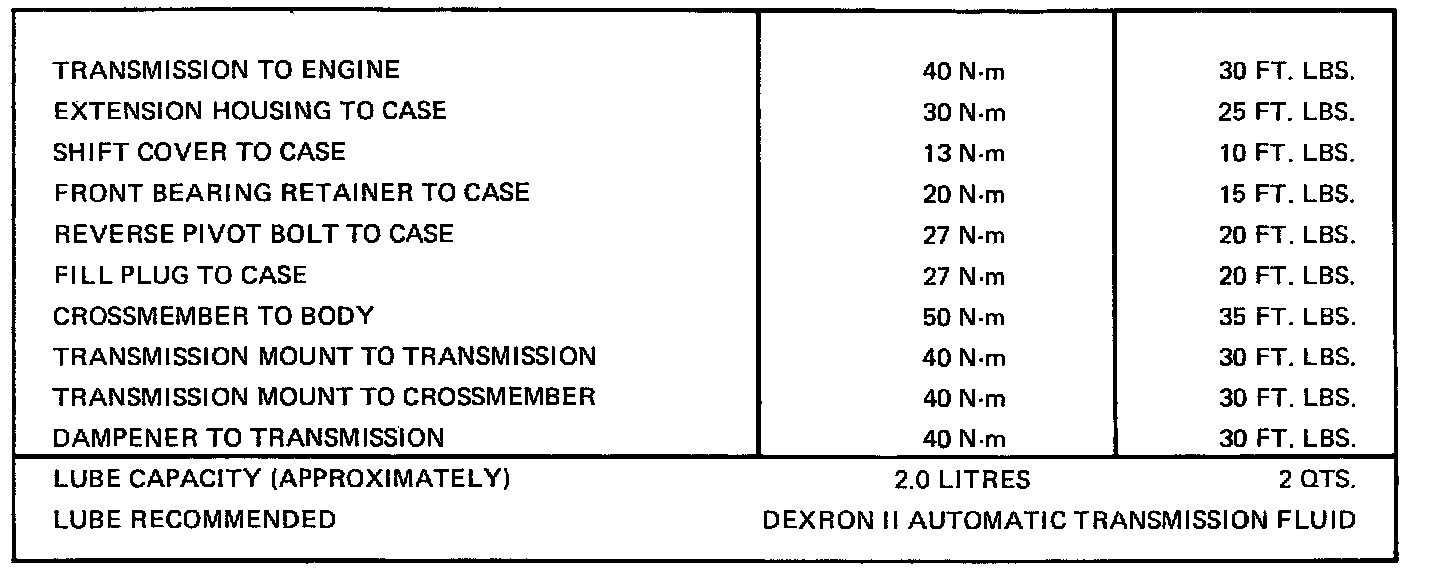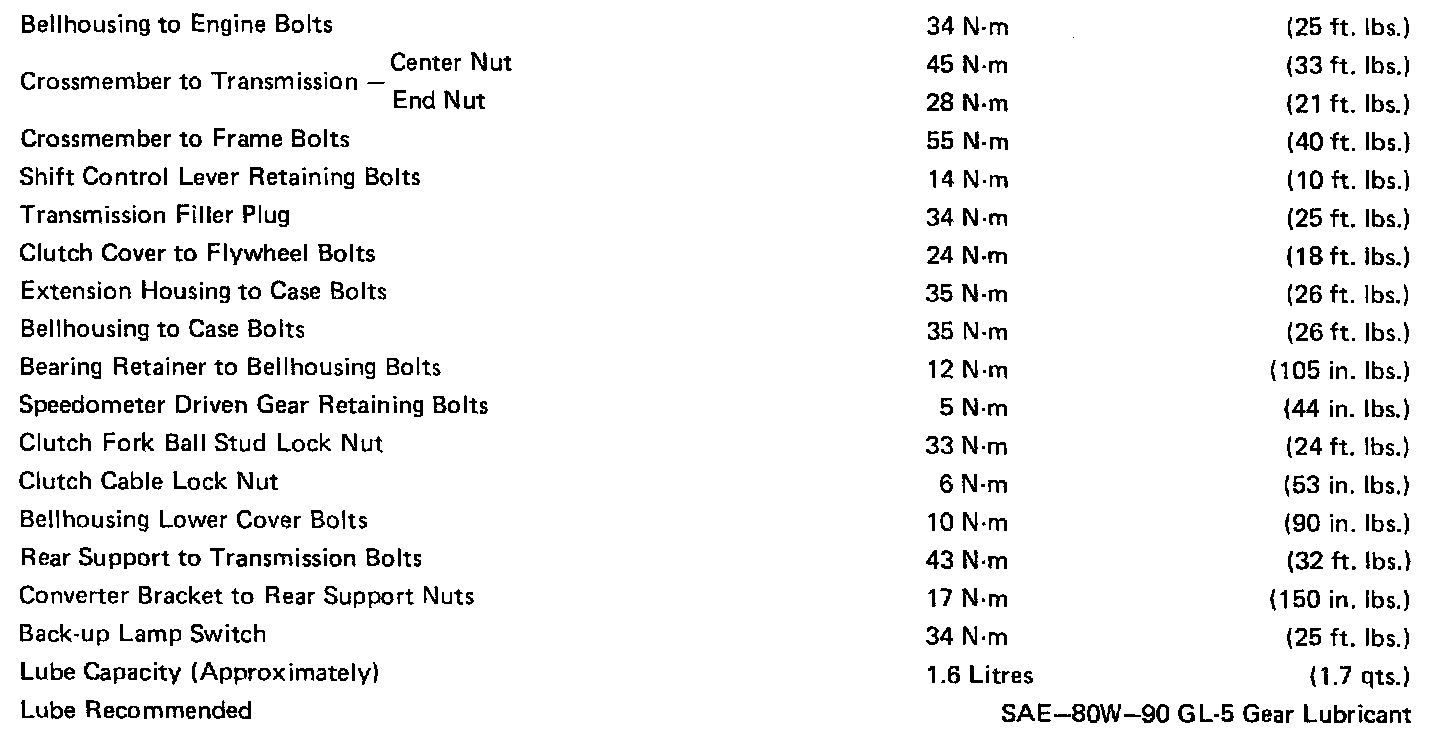 Torque Specifications And Fluid Capacity Chart: