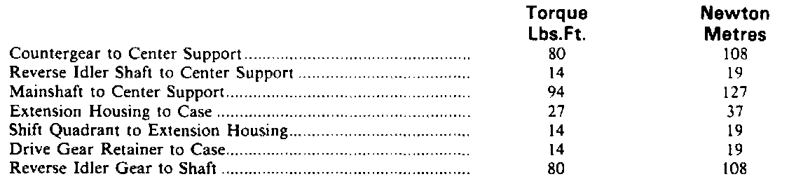 Torque Specifications: