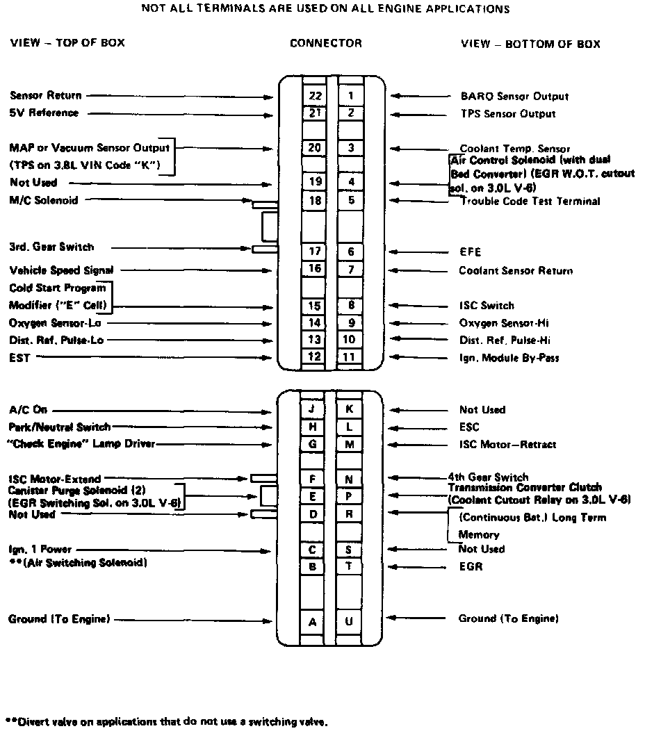 A built-in, self diagnostic system will identify problems most likely to occur in the Throttle Body Fuel Injection System. When a problem is detected, the diagnostic system will illuminate a "Check Engine" or "Service Engine Soon" light in the instrument panel. The "Check Engine" light will flash a trouble code or codes when a trouble code "Test" terminal under the dash is grounded with ignition on and engine not running.