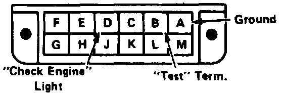 The "Check Engine" or "Service Engine Soon" light will illuminate with the ignition switch on and the engine not running. If the "Test" terminal is then grounded and the light flashes a Code 12, the self-diagnostic system is functioning properly. A Code 12 consists of one flash, a short pause, then two flashes in rapid succession. After a longer pause, the code will repeat two more times.