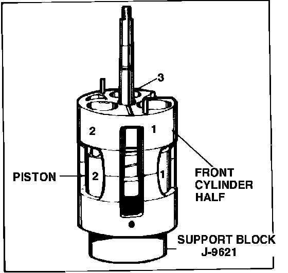10. Examine piston bores and needle bearings in front and rear cylinder halves. Replace front and rear cylinders if any cylinder bore is deeply scored or damaged.