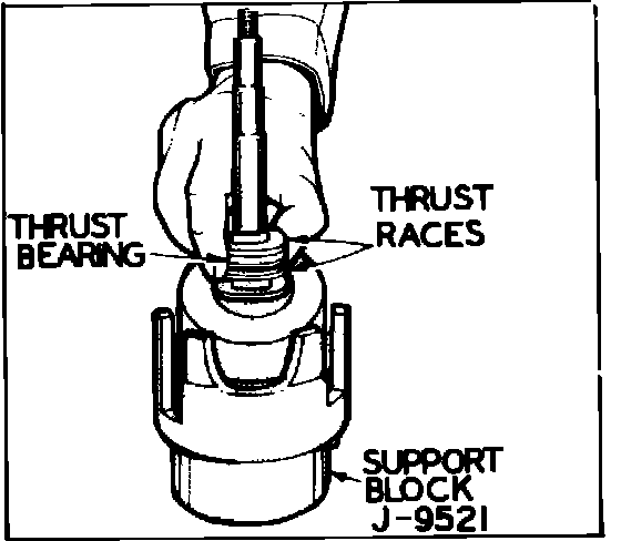 7. Remove rear combination of thrust races and bearing from shaft. Discard races.