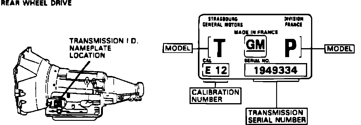 THM 180C TRANSMISSION I.D. NAMEPLATE STRASBOURG, FRANCE: