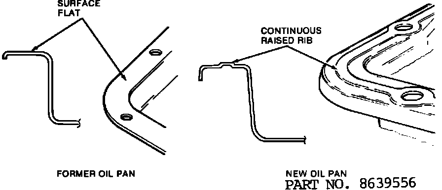 Beginning January 3, 1984, all THM 200-4R transmissions are being produced using a new transmission oil pan (Figure 1) , cork gasket, and special hex head bolts with conical washers (Figure 2). The new transmission oil pan has a continuous ribbed flange (Figure 1) to reduce transmission oil leaks..