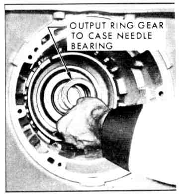 3. Install output ring gear to case needle bearing assembly, shoulder down.