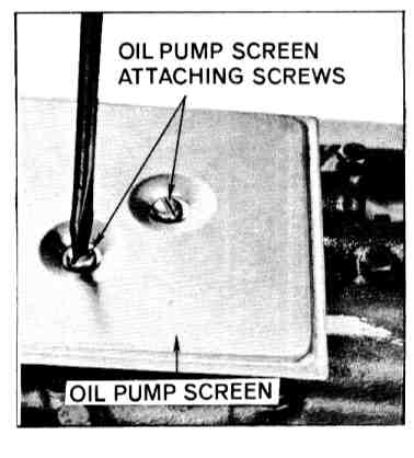 33. Install oil pump screen and oil pan. On some units the oil pump screen is retained by attaching bolts. Torque pan bolts to 12 ft lbs.