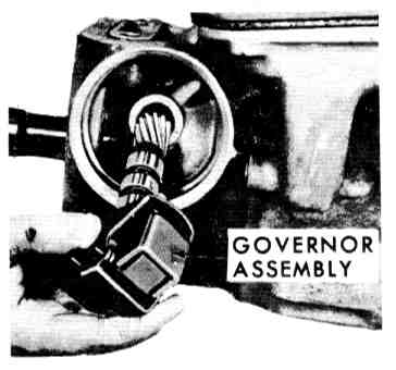34. Install governor, cover and retainer. The dimple in the center of the cover provides proper endplay for the governor. Use hammer only on the cover flange. A distorted cover must be replaced.