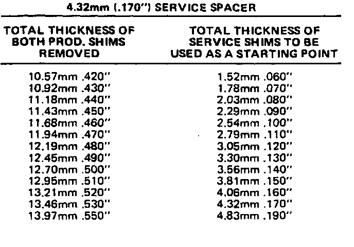 Shim Chart: