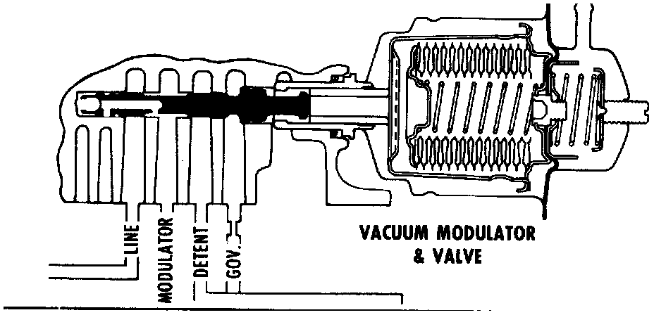 The engine vacuum signal is provided by the vacuum modulator, see image, which consists of an evacuated bellows, a diaphragm and springs. These are arranged so that when installed, the bellows and one spring apply a force which acts on the modulator valve so that it increases modulator pressure. Engine vacuum and the other spring act in the opposite direction to decrease modulator pressure.