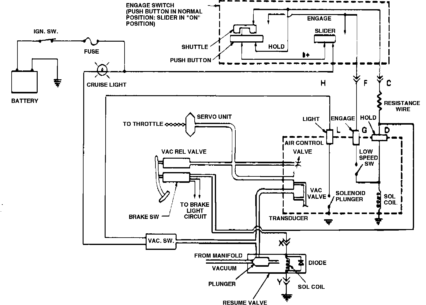 Fig. 5 Cruise control vacuum & wiring schematic: