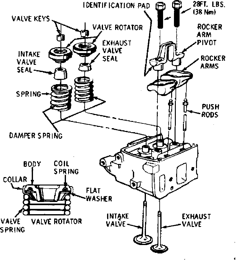 This engine uses valve rotators, Fig. 18. The rotator operates on a sprag clutch principle utilizing the collapsing action of a coil spring to give rotation to the rotor body which turns the valve.